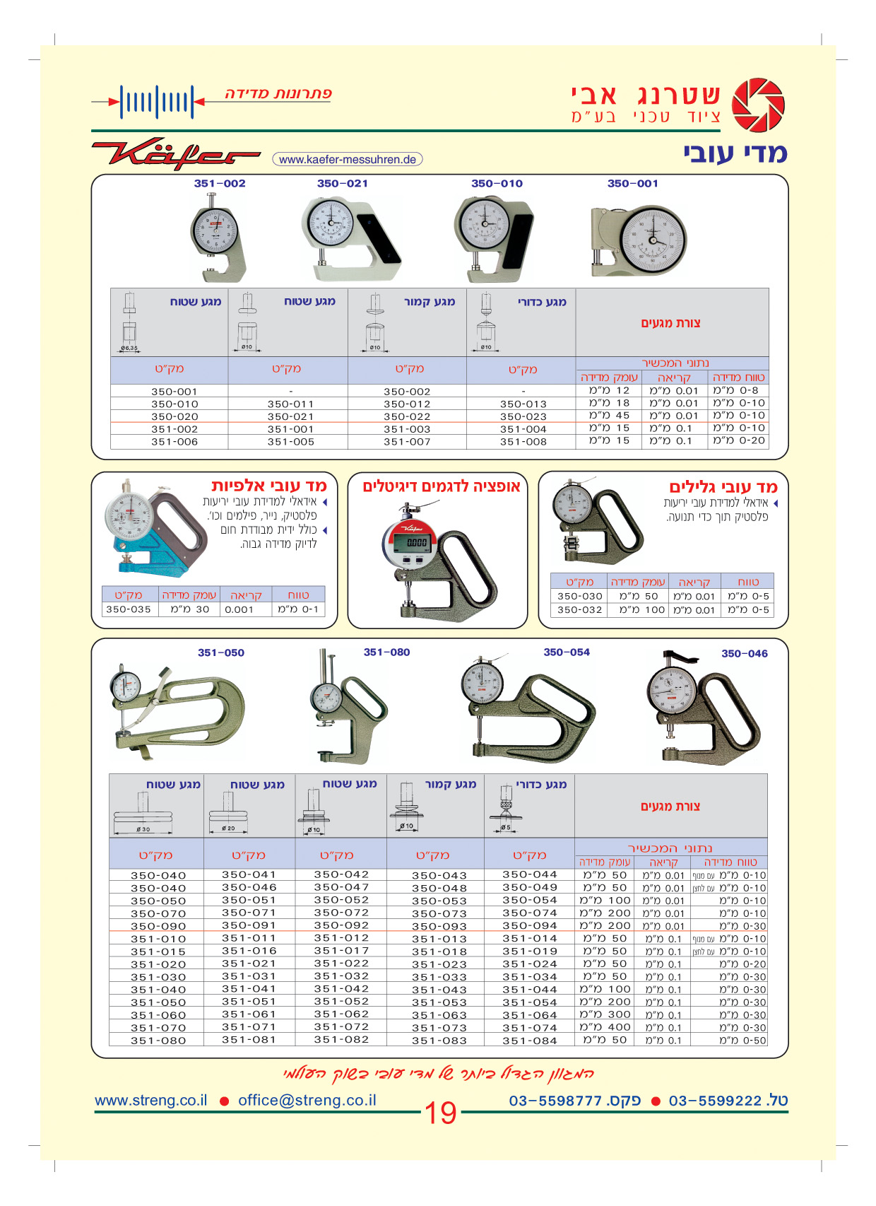 מדי עובי לקטרים חיצונים\פנימיםKROEPLIN תוצרת גרמניה. |
